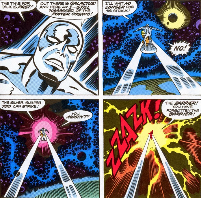 It's a sentiment that the Surfer was robbed of in his Fantastic Four premiere, with the lion's share of the credit for the Earth's salvation instead going to the FF (who, it should be pointed out, were the issue's titled stars).