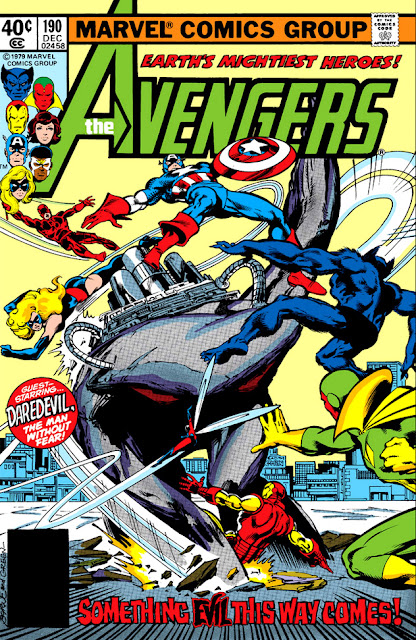 Heading into 1980, artist John Byrne's brief eleven-issue run on The Avengers reached its end with a two-part story plotted by Roger Stern and almost seamlessly split between scripters Steven Grant and David Michelinie, while featuring the return of an old "foe"--Henry Peter Gyrich. Actually, Gyrich is not the principle foe of the story, though to the Avengers he might as well be. Acting as the watchdog of the National Security Council, the agency which is responsible for granting the Avengers their priority clearance, Gyrich has been on the Avengers' case for their lax security standards which not only have failed to prevent unauthorized access to their mansion and its computers' cache of federal government data, but also extend to their constantly shifting membership lineup changes that take place at the drop of a hat while at times failing to keep their total of active members down to a reasonable number. For their part, the Avengers maintain that Gyrich has saddled them with too many restrictions which hamper their ability to carry out their operations.